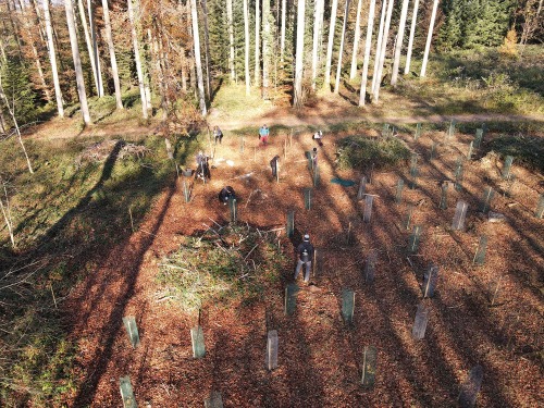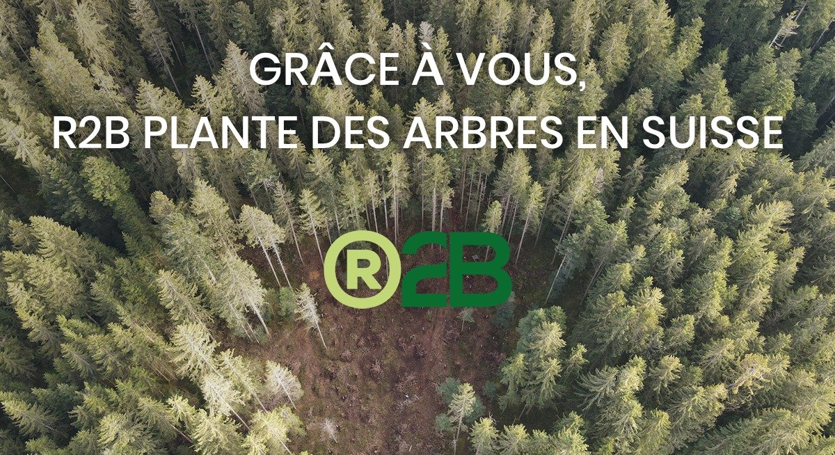 R2B collabore avec Almighty Tree, une organisation qui s’engage à mettre en valeur les forêts suisses. Avec l'aide de ses clients R2B plante des arbres en Suisse, pour diversifier nos forêts avec des essences adaptées au réchauffement climatique et afin de soutenir l’agriculture suisse.